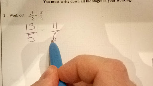 Enter as 1 1/2 which is one and one half or 25 3/32 which is twenty five and three thirty seconds. Write down the remainder as the numerator and the divisor as the denominator. To work this out we'll use the whole number we calculated in step one (1) and multiply it by the original denominator (9).